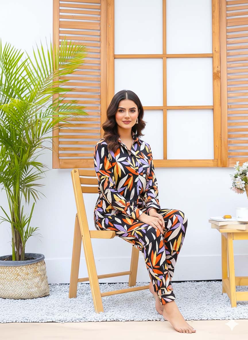 Imported Linen Printed Black Shade PJ Set-LP6
