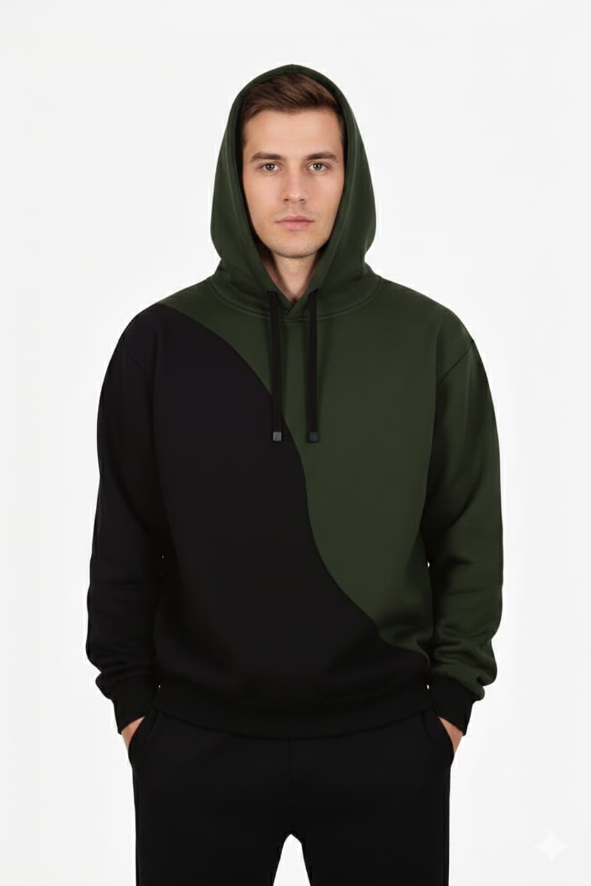 Featuring a half Commando Green and half Black design separated by a bold central line, this hoodie symbolizes balance, duality, and fearless individuality. Crafted from soft, high-quality fleece fabric, it offers warmth, durability, and that perfect Hykeyz street-style silhouette.